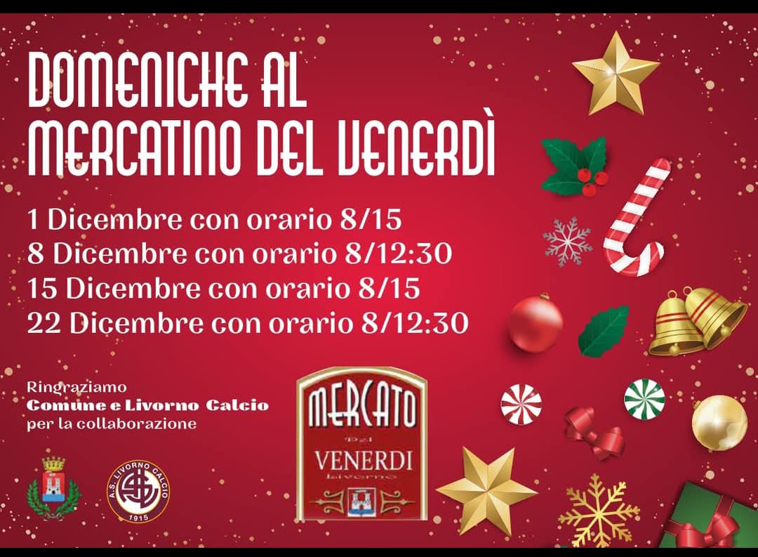 Domenica 8 e 22 dicembre 2024 orario 07.00-13.30 (compreso accesso e sgombero) a causa dello svolgimento delle giornate di campionato allo Stadio Comunale Armando Picchi in via dei Pensieri, previste per le ore 16.00, con conseguente chiusura dell’area adiacente, che rende quindi impossibile il concomitante svolgimento del mercato.