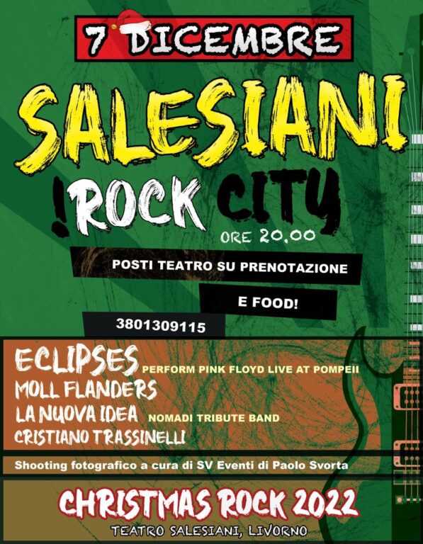 Mercoledì 7 dicembre nel rinnovato e supertecnologico Teatro Salesiani di Livorno si terrà il consueto evento pre-natalizio Salesiani Rock City XMas Rock 2022. Infatti come ogni anno viene preparato un bello spettacolo dal sapore rock per salutare il Natale.