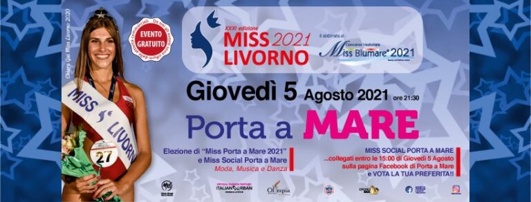 Nuovo appuntamento per la trentunesima edizione di Miss Livorno: giovedì sera, 5 agosto, alle 21,30, il concorso-show dell’estate labronica entrerà nel vivo, con una selezione connessa alla moda, alla musica, alla danza ed allo sport, ospitata nello spazio-eventi di Porta a Mare. Quella di Porta a Mare è una tappa ormai storica di Miss Livorno: dopo uno stop nel 2020 causa Covid, negli anni precedenti la passerella del centro commerciale di Piazza Mazzini ha sempre costituito un trampolino di lancio importante per le tante ragazze iscritte, tradizionalmente chiamate in questa tappa a promuovere se stesse tramite video clip destinati ad essere votati dal pubblico via web. Anche quest’anno per le “bimbe” già iscritte (ma è ancora possibile aderire all’iniziativa, chiamando il 338/9968869) sono scattate le telecamere di Mxt Michele Silvestri videomaker, che ha registrato i video di ognuna di loro, in concorso per divenire la Miss Social Porta a Mare 2021. Visitando la pagina facebook Porta a Mare-area commerciale, tutti hanno già adesso la possibilità di eleggere la propria Miss, mettendo “mi piace” al video della ragazza preferita. La Miss Social eletta tramite i “like” ricevuti (termine per votare le ore 15 di giovedi) è alla quinta edizione, forte di migliaia e migliaia di adesioni all’iniziativa registrate negli anni passati. Oltre a questa fascia-premio, al termine della serata di giovedi saranno assegnate anche altri titoli, validi sia per l’accesso alla finale di Miss Livorno (in programma il 20 e 21 agosto prossimi alla Terrazza Mascagni), sia per la graduatoria valida per il concorso nazionale Miss Blu Mare, a cui Miss Livorno è abbinato, che porterà la nostra Miss (e forse anche altre) sulla nave “SeaShore” della MSC crociere, che ospiterà la finale di Miss Blu Mare durante una crociera nel Mediterraneo.