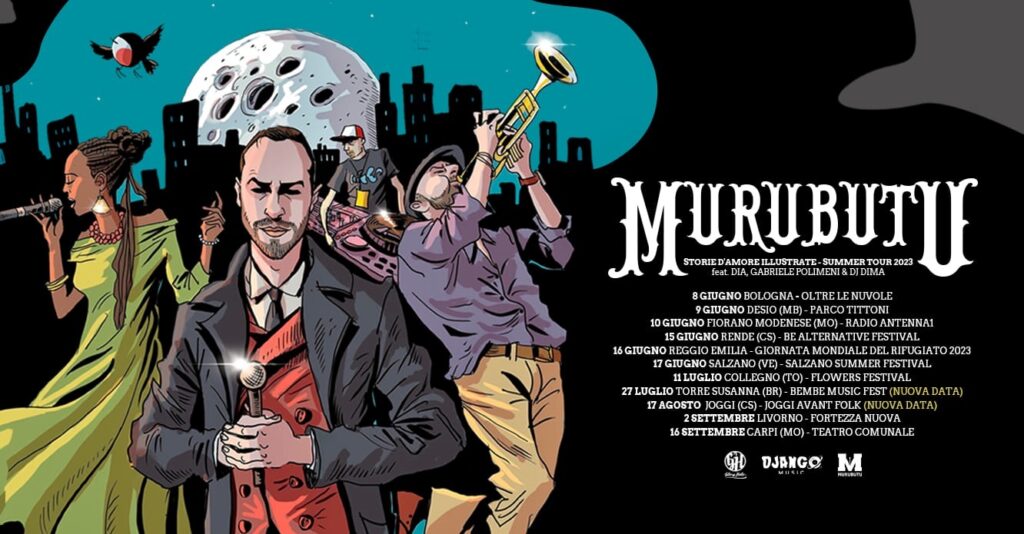 Lo spettacolo live di Murubutu unisce la sua musica alle illustrazioni di Ernesto Anderle detto “Roby il pettirosso”. Lo show sarà l’occasione per presentare il libro “Storie d’amore con pioggia”, uscito a maggio 2023 per Beccogiallo, in cui i racconti del rapper emiliano sono interpretati, con stili e tecniche differenti, dal disegnatore trentino. Ogni canzone del concerto proporrà, quindi, un’immersione completa, grazie alla proiezione su megaschermo dei racconti musicati. A impreziosire i brani ci saranno anche la splendida voce della cantante soul Diana Ghebrelul Iassu, la tromba jazz di Gabriele Polimeni e gli scratches di Dj Dima. Una pioggia di suoni e immagini per un nuovo viaggio nella letteratura.