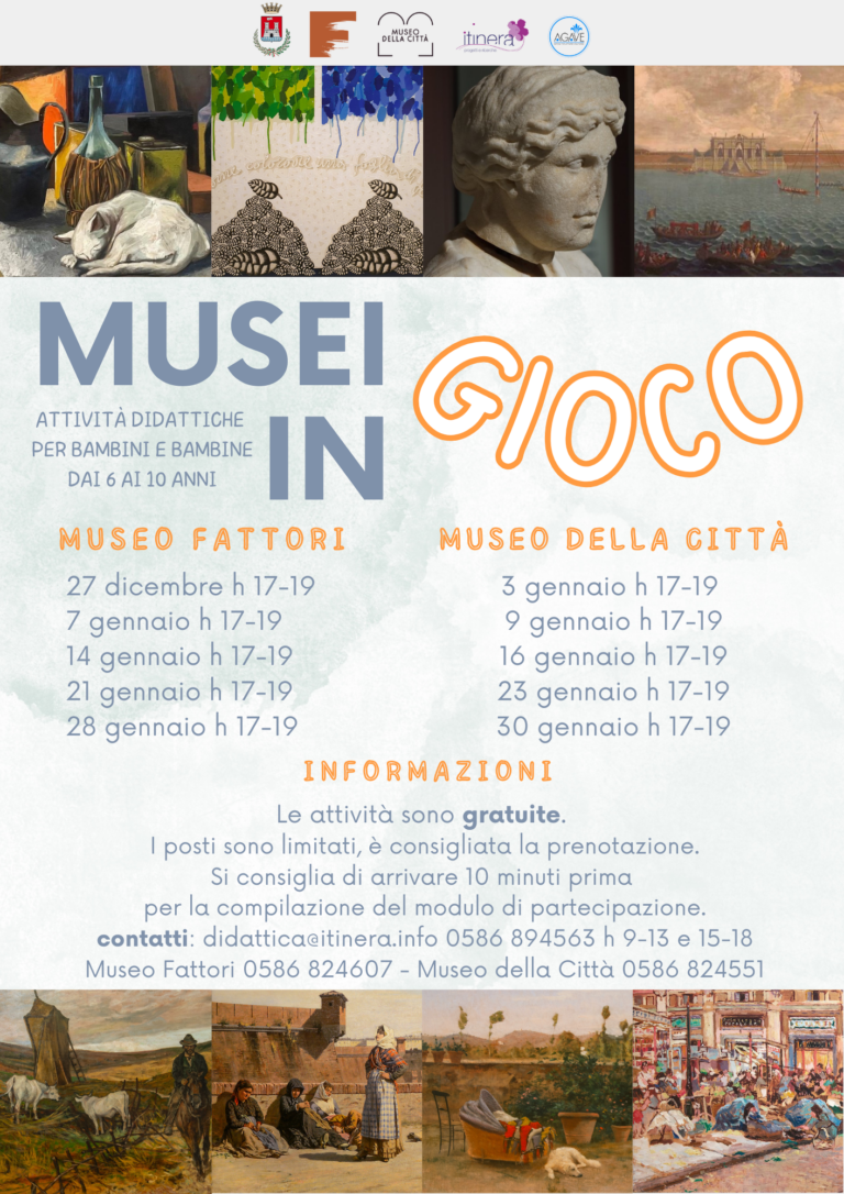 Proseguono le visite e i laboratori didattici a tema ludico-artistico nei musei civici del territorio: il Museo Civico “G. Fattori” e il Museo della Città. Le attività gratuite, rivolte ai bambini ed alle bambine dai 6 ai 10 anni, sono coordinate dalle cooperative Itinera ed Agave in collaborazione con il Comune di Livorno grazie al finanziamento ottenuto nell’ambito del Bando per la realizzazione di attività socio-educative a favore dei minori ai sensi del Decreto della Ministra per la famiglia, la Natalità e le Pari Opportunità del 26/07/2024. Le attività prevedono sia un’attività di visita guidata all’interno delle sale espositive dei Musei sia un’attività esperienziale e pratica nelle sale didattiche delle due strutture.