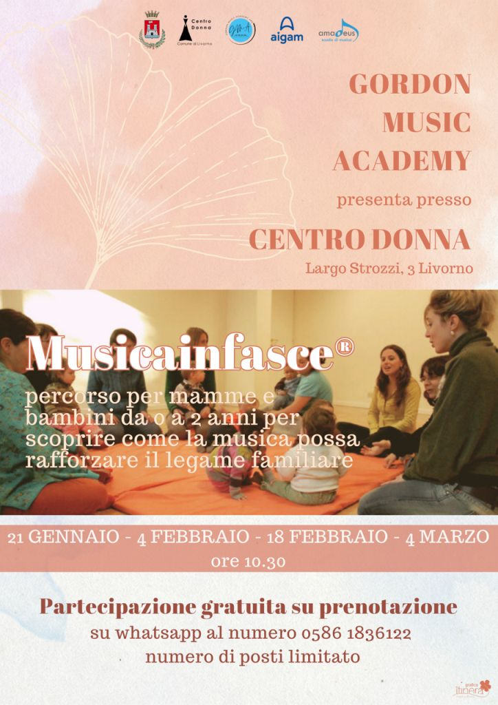 collaborazione con la Scuola di Musica Amadeus e con AIGAM (Associazione Italiana Gordon per l’Apprendimento Musicale), ente di riferimento nazionale per la diffusione della metodologia Gordon. Gli appuntamenti, a cadenza quindicinale, si tengono il martedì alle 10.30 al Centro Donna del Comune di Livorno (largo Strozzi, 3) e sono tenuti da Elena Papini, insegnante certificata AIGAM. I prossimi incontri sono in agenda il 4 e il 18 febbraio e il 4 marzo. Musicainfasce è basato sulla Music Learning Theory del celebre pedagogista musicale Edwin E. Gordon e ha l’obiettivo di arricchire le prime esperienze espressive dei bambini attraverso la musica. Durante gli incontri, si promuove lo sviluppo cognitivo e musicale dei più piccoli, offrendo alle mamme l’opportunità di rafforzare il legame affettivo con i loro figli attraverso il linguaggio musicale.