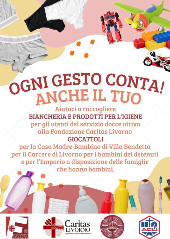 Acli e Fondazione Caritas Livorno insieme, in collaborazione e con la fattiva partecipazione della direzione del Centro Commerciale di Porta a Terra, promuoveranno dal 14 al 21 dicembre una speciale iniziativa per regalare una speranza ed un piccolo sostegno ai senza tetto, a chi vive grazie al supporto delle mense per meno abbienti, a quelle famiglie che non hanno disponibilità per comprare un regalo ai propri bambini. A tutti loro sarà dedicata una raccolta di giocattoli, indumenti, biancheria e prodotti per l’igiene di uso quotidiano.