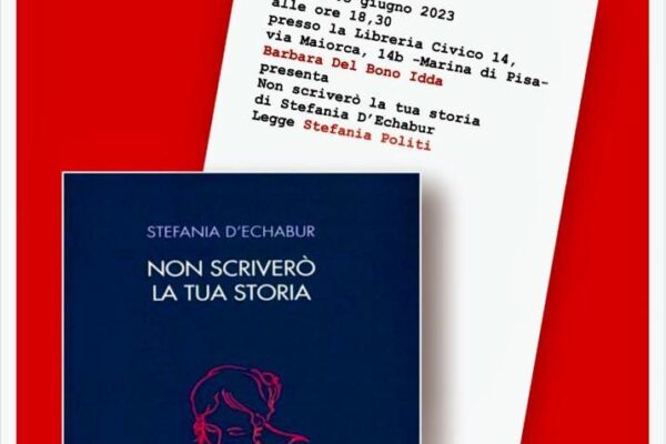 Sabato 3 giugno, alle 18.30, a Marina di Pisa nei locali della Libreria Civico 14, via Maiorca 14b, sarà presentato il libro di Stefania D’Echabur Non scriverò la tua Storia (Erasmo Libri – Edizioni del Boccale). Con l’autrice, la scrittrice Barbara Del Bono Idda. Letture di Stefania Politi.