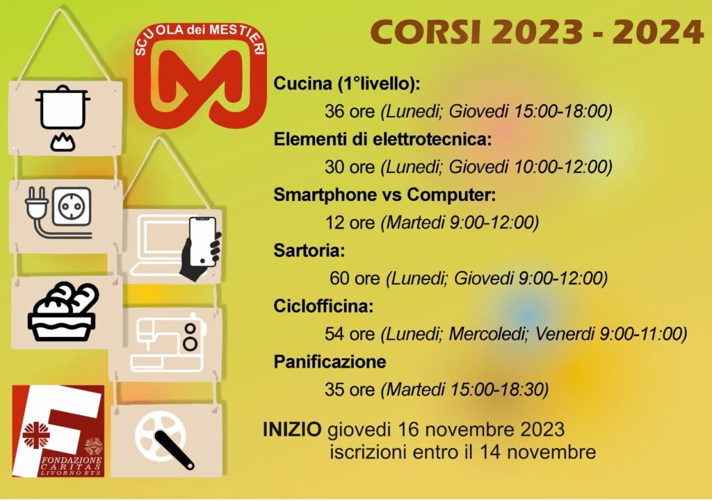 Sono aperte le iscrizioni per i nuovi corsi della Scuola dei Mestieri della Fondazione Caritas Livorno.