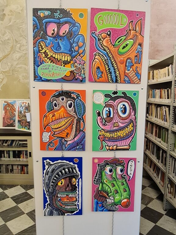 Visto il successo di pubblico di “Occhi di Pollo”, la mostra personale di Paolo Pollo Cioni, artista visivo e attore di teatro, cinema e televisione, l’esposizione è stata prorogata a sabato 30 aprile. La mostra presenta circa cento opere, fra disegni e tavole, che raccontano il mondo immaginifico di Cioni, dove i personaggi dei cartoni animati e dei videogiochi si trasfigurano in orribili mostri. Questi personaggi orrorifici hanno però colori accesi e fluo, e si esprimono con frasi scherzose tanto da strappare una risata ai visitatori che sono colti di sorpresa dal contrasto. La mostra è stata inaugurata presso il Centro di documentazione sulle arti dello spettacolo Biblioteca Labronica sede di Villa Maria, venerdì 11 marzo, con un evento che ha visto l’artista Cioni intervistato dall’attore Guglielmo Favilla. La mostra è promossa dal Comune di Livorno e realizzata dalla Cooperativa Itinera, e visitabile presso la sede di Via Redi 22 fino alla mattina di sabato 30 aprile, tutti i giorni, in orario di apertura della biblioteca dal lunedì al venerdì dalle 8.30 alle 13.30 e dalle 14.30 alle 19.30 e il sabato dalle 8.30 alle 13.30.