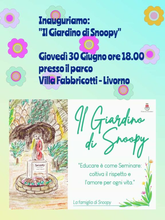 Appuntamento da non perdere per tutti gli amanti dei cani e degli animali. Nel pomeriggio di giovedì 30 giugno, alle 18, taglio del nastro del “Giardino di Snoopy” all’interno della Villa Fabbricotti proprio in prossimità della statua che ritrae il cane Snoopy, rimasto ucciso nell’agosto del 2015 a causa di un colpo di carabina mentre si trovava sul balcone della propria abitazione. Lo scorso febbraio venne anche il noto attore Giorgio Panariello a far visita, prima del suo spettacolo, al monumento. “Questo è un simbolo per tutte le persone che passeranno di qua, e non hanno cani – disse Panariello in quell’occasione – Quelle diranno, poverino questo canino, ma che gli né successo, e magari andranno a cercare di capire, faranno ricerche. Ed è giusto che sia in un posto come questo, perché la locazione è importante, perché non è in un canile. Questo è in mezzo alla gente, che si può rendere conto e c’è anche scritto in sostanza: l’essere umano è cattivo. Non tutti. E per questo dobbiamo rivolgerci alle anime più gentili. L’importante è avvicinarsi ad un animale”.