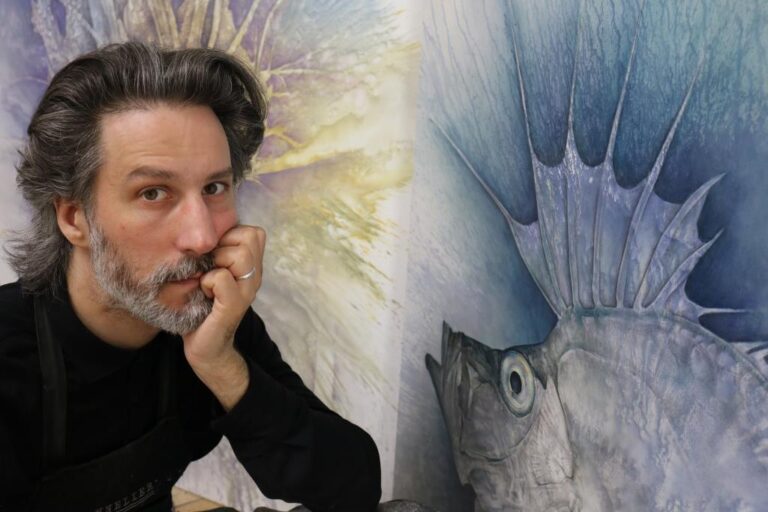 Riccardo Ruberti, da diversi anni apprezzato per le sue opere, alcune delle quali si trovano og- gi in importanti collezioni internazionali come Londra, Abu Dhabi, Amsterdam, Roma e per la sua attività di docente di Discipline grafiche e pittoriche (attualmente insegna presso il Liceo Artistico IIS Vespucci-Colombo di Livorno), torna ad esporre nella sua città dopo la recente collaborazione con Arte Arechi, dove è stato selezionato nel 2021 tra gli undici pittori italiani per l’arte contemporanea a Fremantle, Australia.