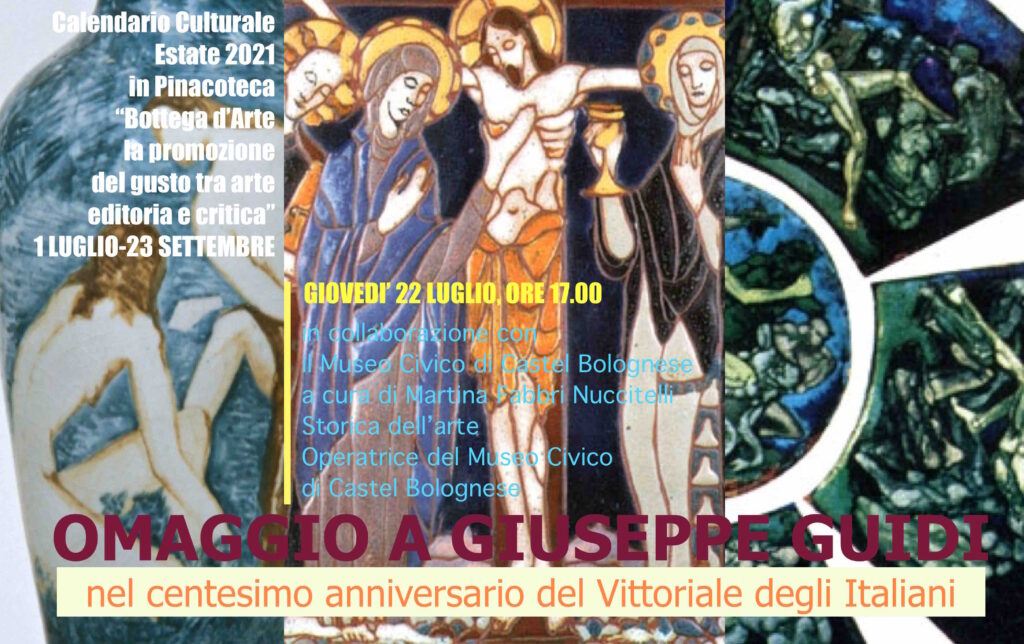 Affidata a un power point dal titolo Omaggio a Giuseppe Guidi nel centesimo anniversario del Vittoriale degli Italiani, realizzato in collaborazione con il Museo Civico di Castel Bolognese, a cura di Martina Fabbri Nuccitelli, Storica dell’arte, Operatrice del Museo Civico di Castel Bolognese, questa 4° Puntata intende celebrare uno dei protagonisti sommersi di Bottega d’Arte Livorno, il ravennate Giuseppe Guidi, autore di quella Via Crucis conservata al Vittoriale degli Italiani che risplende a sorpresa nella locandina di “Il Cattivo Poeta”, l’ultimo best seller dedicato a Gabriele d’Annunzio interpretato da Sergio Castellitto.