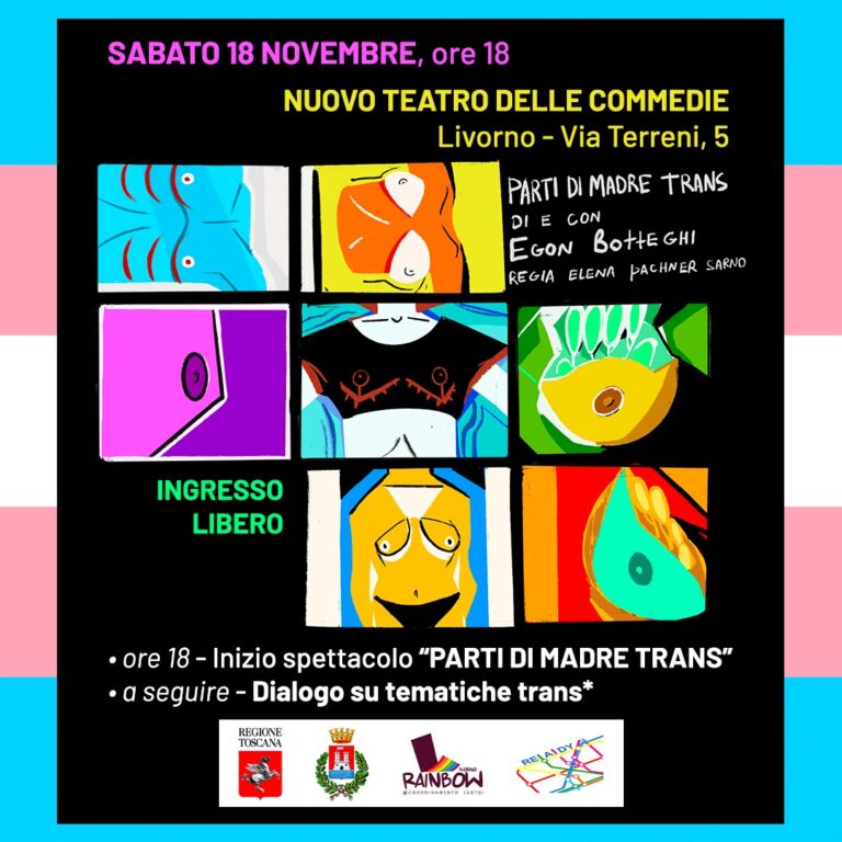 Sabato 18 novembre, alle18, al Nuovo Teatro delle Commedie, in via Terreni 3 a Livorno, andrà in scena la performance “Parti di Madre Trans*”, di Egon Botteghi per la regia di Elena Pachner Sarno, una performance che è insieme un seminario, una testimonianza e un gioco a premi, in cui si affronta il tema della genitorialità delle persone trans*.
