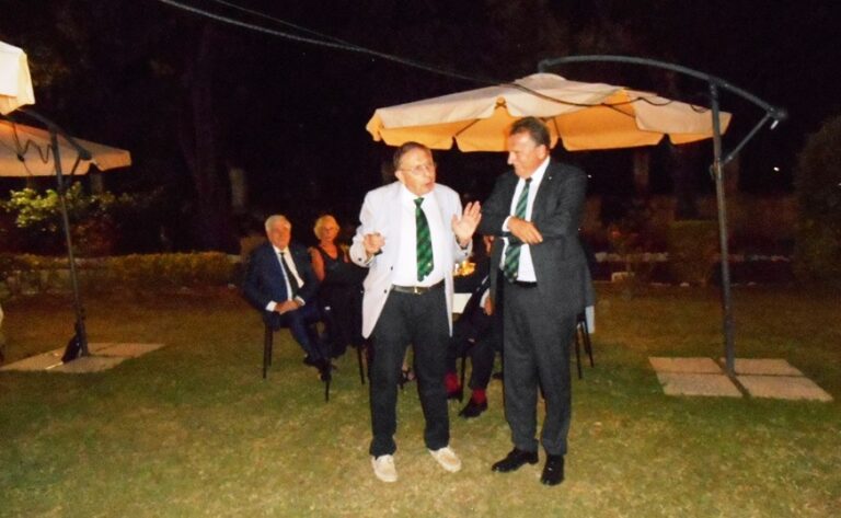 Nella splendida cornice del jardin del Circolo Ufficiali della Marina Militare di Livorno si è svolta nella serata di ieri – signorilmente organizzata dal simposiarca ammiraglio Piero Vatteroni – la conviviale per il passaggio della campana dell’Accademia Italiana della Cucina fra il delegato cessante, l’avvocato Sergio Gristina, e il delegato entrante, l’ammiraglio Mauro Barbierato.