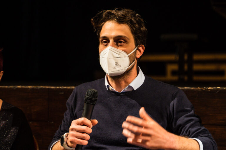 “La cosa è partita come uno scherzo, ma quando sono passato a vedere le prove sembrava davvero il Teatro Ariston. Ci tengo a precisare che questo spettacolo è quello che ha venduto più biglietti, dopo il concerto di Ligabue nel 2004”. Con queste parole, il sindaco Luca Salvetti introduce uno degli eventi più stravaganti della stagione del Teatro Goldoni: “Perché il Goldoni è il Goldoni – Il festival che non avete mai visto né sentito”, la serata solidale in programma per venerdì 25 marzo alle 20, chiaramente ispirata al celebre festival di Sanremo, con una conduzione d’eccellenza; quella del primo cittadino affiancato dalla vicesindaca Libera Camici (foto in pagina di Lorenzo Amore Bianco).