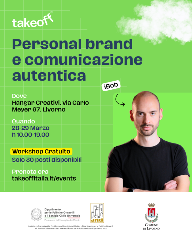 Come si costruisce un personal brand autentico? Il 28 e 29 marzo 2026, gli Hangar Creativi di Livorno ospitano iBoB (Roberto Lucentini) per un workshop intensivo di 16 ore su personal branding e comunicazione digitale.