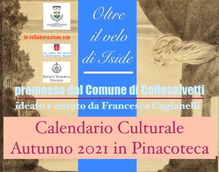 Si inaugura giovedì 4 novembre 2021, ore 17,00, alla Pinacoteca Comunale Carlo Servolini (Collesalvetti, via Umberto I, n. 63), la 1° Puntata del Calendario Culturale 2021/2022, “Oltre il velo di Iside”