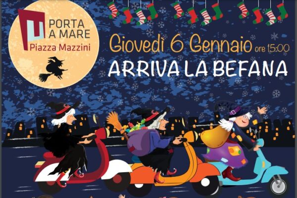 Giovedì 6 gennaio, a partire dalle 15, ritorna a Porta a Mare la vecchietta più arzilla dell'anno: la Signora Befana. Iniziativa gratuita. L'evento si svolgerà all'aperto e in pieno rispetto delle normative anti-Covid