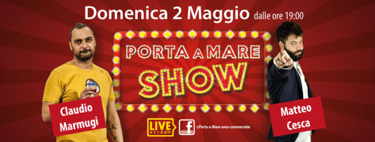 Continua il grande successo dell’intrattenimento domenicale ideato dal Consorzio Porta a Mare. Porta a Mare Show avrà come ospite della puntata n. 5 di domenica 2 maggio il giovane e talentuoso Matteo Cesca. Matteo assicura una mezz’ora ganzissima, soprattutto per lui, perché sarà senza moglie e figlioli, infatti fosse per lui vorrebbe farla durare 4 ore e mezza. Matteo continua dicendo: “Non vedo l’ora che sia Domenica per stare una mezzoretta con voi e con il mio amico Claudio Marmugi, comico che stimo moltissimo e che metto al 126esimo posto tra i miei comici preferiti”. Claudio e Matteo vi aspettano dunque domenica 2 maggio alle 19 in diretta streaming sulla pagina di Porta-a-Mare-area-commerciale con Porta a Mare Show. Gli altri protagonisti che attendono di salire sul palcoscenico virtuale sono; Giovanni Bondi & Valerio Delfino, Enrico Faggioni e Marco Conte. Ma, fa sapere il Consorzio Porta a Mare, stiamo lavorando per coinvolgere altri importanti nomi… e poi chi sa se qualcuno chiederà di fare il bis!! Porta a Mare è sempre dalla parte dei suoi follower. Non puoi mancare!! Si ricorda che tutte le iniziative sono gratuite.