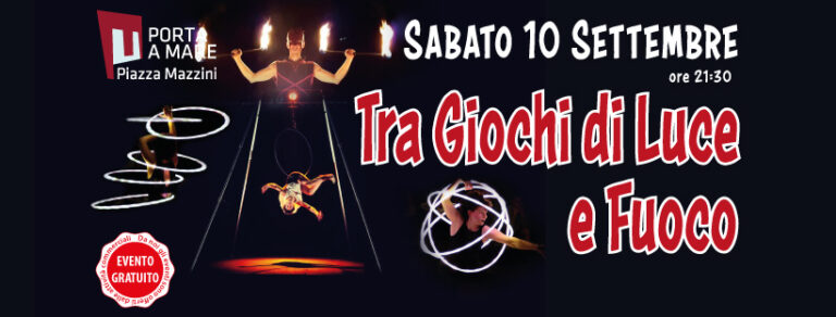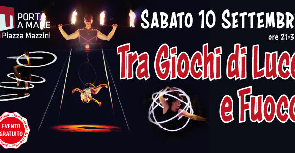 L’estate di Porta a Mare si conclude con uno degli spettacoli più affascinanti presentati su questa bellissima piazza: “Tra giochi di luce e fuoco”.