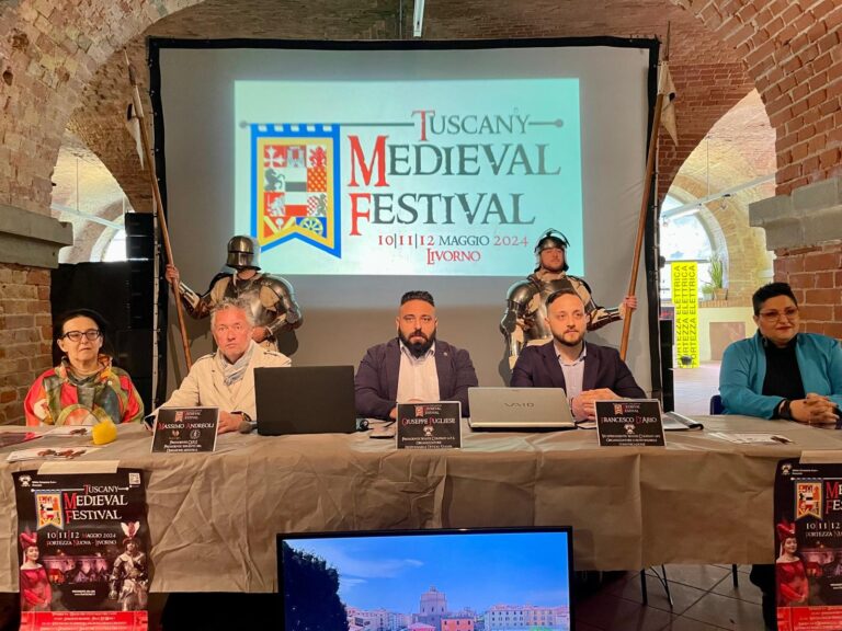 Presentata la terza edizione del Tuscany Medieval Festival, organizzato dall’associazione White Company Aps, in programma dal 10 al 12 maggio in Fortezza Nuova. Una tre giorni di rievocazione e divulgazione storica, ma anche di mostre, giochi, attività per le famiglie e spettacoli dal vivo per celebrare il periodo medievale. Giuseppe Pugliese di White Company: “Abbiamo analizzato le esperienze estere e cercato di riportare le cose migliori a Livorno. La nostra intenzione è quella di aprire a tutta la cittadinanza, di qualsiasi età”. Tra le novità principali dell’edizione 2024 la presenza del circuito internazionale di Buhurt (competizioni sportive di combattimenti medievali full-contact) che, organizzato da Magna Carta, presenterà la Giostra di Giovanni: un torneo a cui parteciperanno cavalieri e combattenti da molti paesi europei che sfideranno quelli italiani nei giorni di sabato e domenica. Un’altra novità di quest’anno è la collaborazione con le Gare Remiere Città di Livorno, che darà vita con la partecipazione di tutte le sezioni nautiche al primo Palio De’ Medici, dove le cantine si cimenteranno in sfide e dimostrazioni lungo i fossi della Fortezza dalle ore 19.00 del venerdì. Anche quest’anno, durante il pomeriggio del sabato, è previsto il corteo con tutti i trecento figuranti del Tuscany Medieval Festival che, dopo la benedizione dei cavalieri tipica davanti al duomo, sfileranno fino alla Fortezza Nuova. Sempre il pomeriggio del sabato sarà arricchito dall’immancabile giostra a cavallo, dove coraggiosi cavalieri si sfideranno uno contro uno senza esclusione di colpi. Tra i tanti gruppi da segnalare il concerto di domenica sera alle ore 20.45 del gruppo folk metal italiano Furor Gallico che, per la prima volta a Livorno, si esibirà con il nuovo album ‘Future to Come’. Inoltre, anche quest’anno verrà allestita e raddoppiata l’area artigianale con i migliori artigiani d’Italia e le loro officine attive a dimostrazione di antichi mestieri: dal fabbro ai sarti, fino alla realizzazione di ceramiche e molto altro.