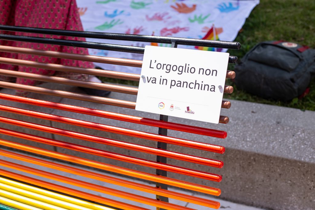 Pride 2022. Collesalvetti, inaugurazione panchina arcobaleno