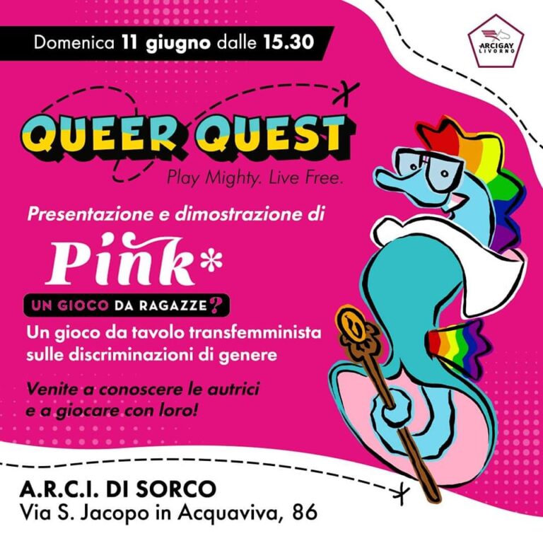Domenica 11 giugno, alle 15:30 al circolo ARCI di Sorco in via S. Jacopo in Acquaviva, 86, torna il secondo appuntamento con Queer Quest: la giornata sicura, inclusiva e intersezionale dedicata ai giochi da tavolo a tema!