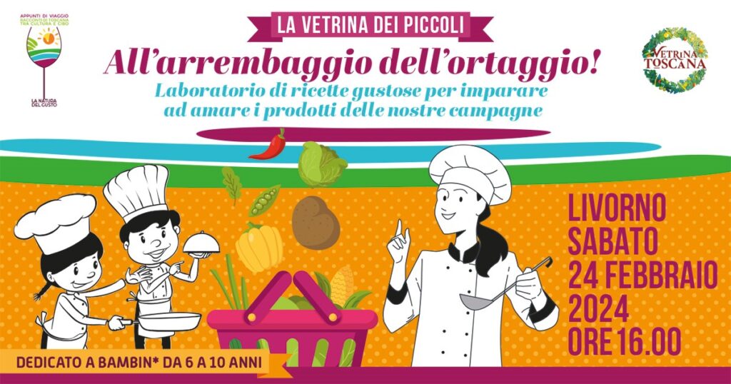 Laboratorio di ricette gustose, dedicato a bambini da 6 a 10 anni, per imparare ad amare i prodotti delle nostre campagne. Secondo ed ultimo appuntamento dedicato ai bambini che Confesercenti organizza nell’ambito del progetto Vetrina Toscana. INFO: 348.7382094. Prenotazione obbligatoria entro venerdì 23 febbraio ore 12