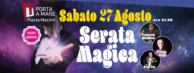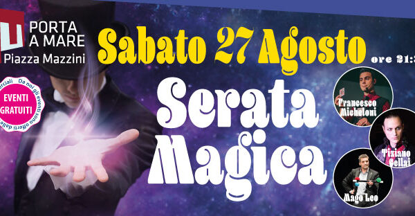 Dalle 21,30 di sabato 27 agosto tre dei maggiori protagonisti della Pistoia Magic, Francesco Micheloni, MagoLeo e Tiziano Cellai, saranno sul palco di Porta a Mare per uno spettacolo di magia e illusionismo dedicato a grandi e piccini. Iniziativa gratuita