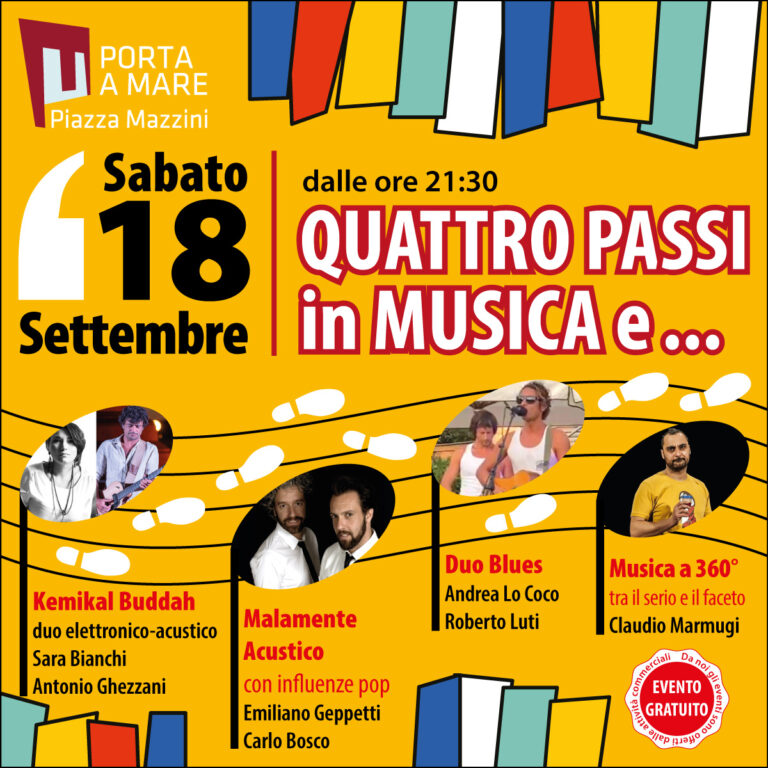 Sabato 18 settembre la piazza di Porta a Mare sarà suddivisa in quattro postazioni dislocate in chiave strategica che vedranno coinvolte importanti realtà musicali e non del territorio.