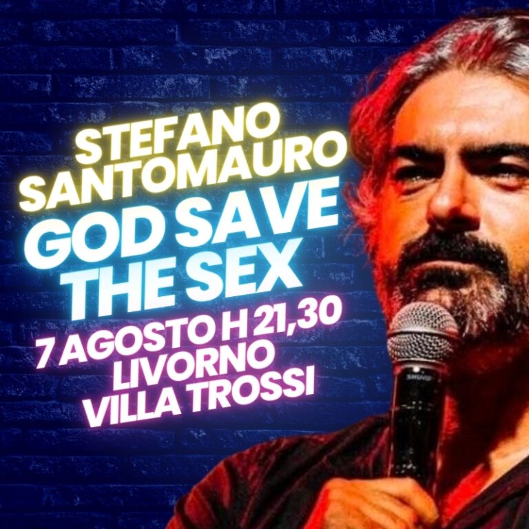 Il comico livornese Stefano Santomauro torna nella sua Livorno il 7 agosto 2024 alle 21,30 con lo spettacolo comico “God Save The Sex” dopo i sette Sold Out consecutivi di Livorno e Torino.