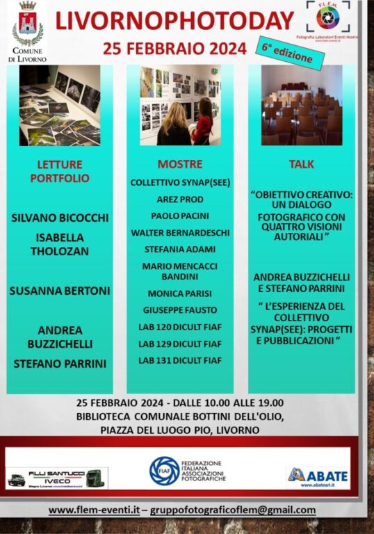 La manifestazione, curata da Silvia Tampucci, Paolo Bini ed Alessio Brondi, si svolgerà il 25 febbraio alla Biblioteca comunale dei Bottini dell’Olio a Livorno e sarà aperta a tutti gli appassionati di fotografia e non solo ed avrà come ogni anno ingresso libero