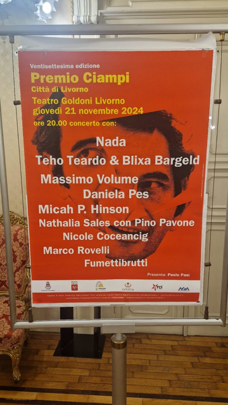 Ricordiamo che il Premio Ciampi Città di Livorno è organizzato da Associazione Premio Ciampi ed Arci in collaborazione con Comune di Livorno, Fondazione Livorno, Regione Toscana, Fondazione Teatro di Livorno e ASA azienda servizi ambientali S.P.A. ll Premio Ciampi ringrazia per la collaborazione: Valigie Rosse edizioni, Il Popolo del Blues, cooperativa sociale Brikke Brakke -Atelier Blu Cammello, Extra Factory-Arts&culture, Piero Ciampi Fan Club, AMM Associazione Musica Monteggiori, BigWaverecording studio, Il Canto della balena -Gruppo di tutela culturale