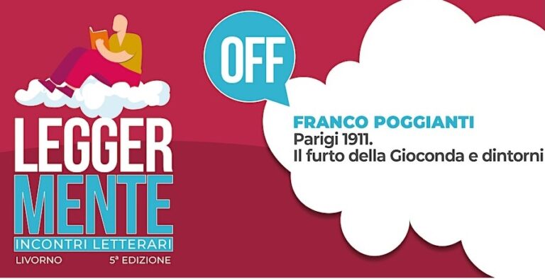 Domenica 23 luglio, sempre alle ore 19, si chiude la rassegna letteraria LeggerMente con Franco Poggianti che presenta Parigi 1911. Il furto della Gioconda e dintorni (Mauro Pagliai Editore, 2023). Introducono Enrico Mannari, giornalista e docente per l’Università LUISS; Simonetta Del Cittadino, attrice, autrice, docente e regista e Marie Odile Volpoet, traduttrice e docente.