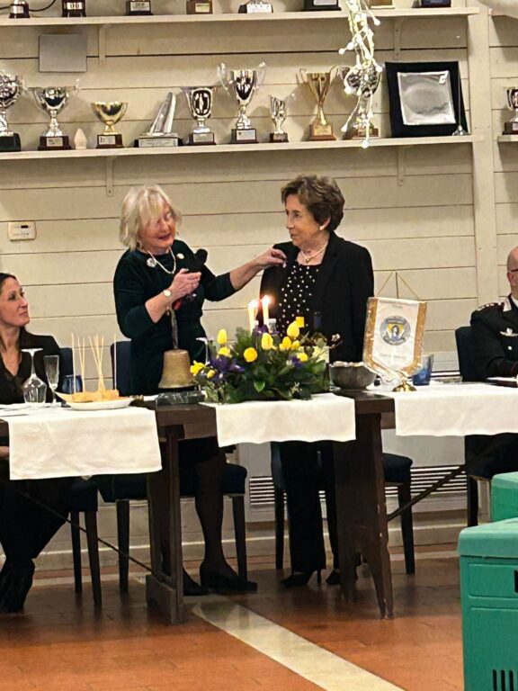 Maria Raffaella Calabrese De Feo e Maria Bacci di Capaci hanno quindi preso la parola rivolgendosi agli invitati, ma in particolare alle socie del club che sono intervenute quasi al completo con numerosi ospiti. La Past President ha ricordato i tanti service realizzati durante il suo mandato sia a livello nazionale sia locale, la Presidente eletta ha descritto i progetti e le attività che proporrà durante il suo biennio, che seguiranno il solco tracciato dalle Presidenti precedenti e nell’ottica della promozione dei diritti umani e del miglioramento della condizione della donna. In particolare ha illustrato le attività previste per il mese di febbraio in occasione della giornata mondiale delle donne nella scienza. Il 9 febbraio alle ore 10.00 presso villa Henderson verrà inaugurata una mostra dal titolo “Grandi scienziate del ‘900” allestita dall’Associazione La Nuova Limonaia di Pisa rivolta in particolare alle scuole, promossa con lo scopo di far conoscere donne scienziate che con la loro passione e i loro studi hanno contribuito allo sviluppo scientifico ma anche di abbattere gli stereotipi di genere duri ancora a morire. Il 24 sempre di febbraio sempre a Villa Henderson avrà luogo un convegno dal titolo “Intelligenza artificiale nuovi scenari” in quanto l’IA farà parte del nostro futuro ed è necessario sapere le opportunità e i rischi che presenta.
