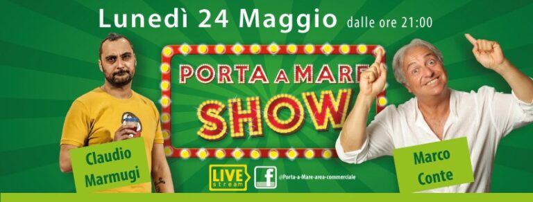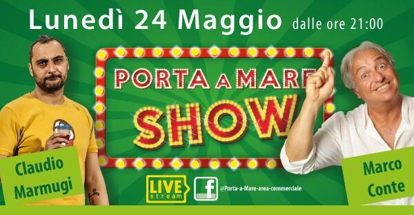 Vi preghiamo di comunicare che verrà trasmessa questa sera Martedì 25 e vedrà come ospite Marco Conte uno degli artisti toscani più apprezzati. Con il suo spettacolo “MarConte Show” presenterà un repertorio comico tra cabaret puro, satira di costume, toscanità e livornesità. Marco esce dal piccolo schermo televisivo della Rai e di Mediaset e dal grande schermo cinematografico per approdare sulla nostra pagina Facebook. Basterà collegarvi a www.facebook.com/ Porta-a-Mare-area-commerciale e godervi lo spettacolo comodamente seduti sul Vostro divano e dovunque voi siate!! Vi aspettiamo quindi martedì 25 maggio alle ore 21 sulla pagina Porta-a-Mare-area-commerciale con una nuova divertente diretta del progetto “Porta a Mare Show”. Il progetto volge al termine… lunedì 31 maggio è in programma l’ultima puntata in diretta streaming con la presenza del frontman dei Gary Baldi Bros Emiliano Geppetti. Porta a Mare è sempre dalla parte dei suoi follower. Non potete mancare!! Si ricorda che tutte le iniziative sono gratuite.