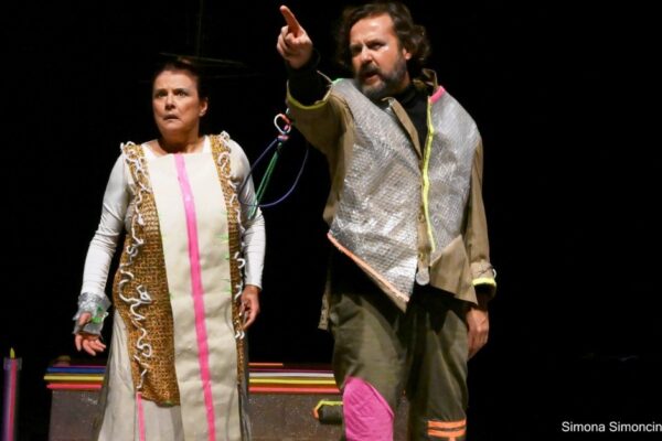 Nella foto di Simona Simoncini, Eleonora Zacchi e Riccardo Di Francesca in una scena di Orazione IA di Fernando Arrabal.