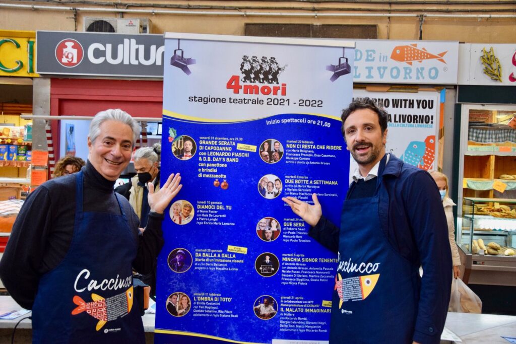 Presentata, il 27 novembre al banco Cultura a peso all’interno del Mercato centrale, la stagione teatrale 2021/2022 della Compagnia degli onesti: 9 gli spettacoli in programma che saranno ospitati dal Cinema teatro 4 Mori (clicca qui o sul link in fondo all’articolo per consultare il programma completo). Ad annunciarli, una divertente chiacchierata tra gli attori Emanuele Barresi e Leonardo Fiaschi.