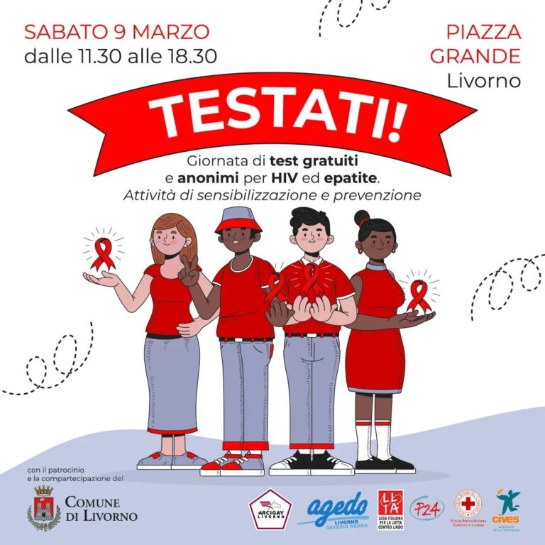Durante la giornata sarà possibile effettuare test gratuiti ed anonimi per HIV ed epatite grazie alla collaborazione delle seguenti realtà: Arcigay Livorno, Agedo Livorno, Croce Rossa, P24 Lila e Cives.