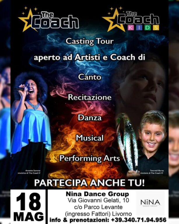 Il 18 maggio 2025 i rinnovati locali del Nina Dance Group, scuola di danza del centro commerciale Parco Levante, saranno location di casting per il programma televisivo “The coach” dedicato ai talenti di ogni genere: canto, danza, recitazione, musical e performing art.