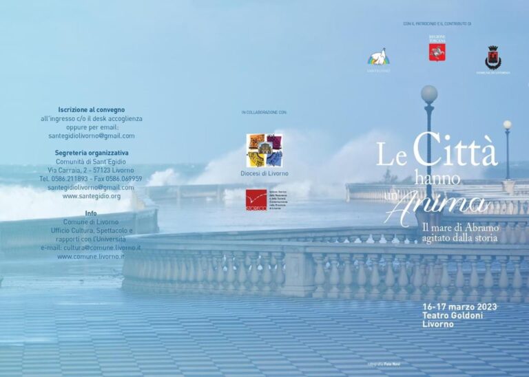 Il Convegno è promosso dalla Comunità di Sant’Egidio in collaborazione con il Comune e la Diocesi di Livorno, L’Istituto storico per la Resistenza e l’età contemporanea ed ha il patrocinio della Regione Toscana.