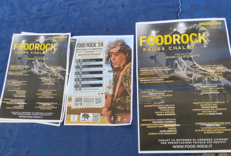 Per ulteriori informazioni sui concerti è possibile contattare i seguenti numeri: +393801309115 e +393313192823, oppure contattare la pagina Facebook Food Rock Livorno o il sito web food-rock.it.