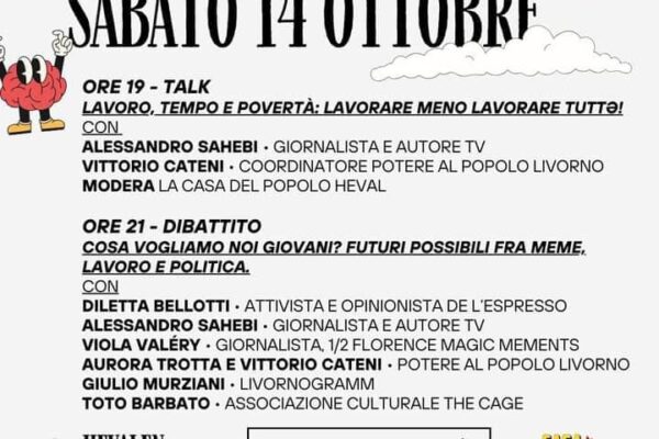 Al via da giovedì 12 ottobre fino a domenica 15 ottobre, a Livorno, la seconda edizione dell’Hevalen Festival. Jacopo Simonetti, presidente dell’Associazione Heval: “Il Festival nasce con l’obiettivo di raccontare la realtà che ci circonda per dimostrare che immaginari spesso definiti utopici sono in realtà possibili, dobbiamo continuare a sognare e lavorare per un cambiamento”.