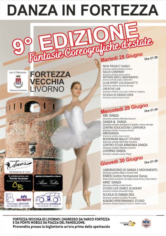 Dopo due anni di sospensione forzata causa pandemia, il mondo della danza labronico tornerà ad animare gli spazi della Fortezza Vecchia con la rassegna “Fantasie coreografiche d’estate” 9° edizione. Per quattro giorni, da martedì 28 a venerdì 1 luglio (inizio alle 21,30) il palco all’ombra del Mastio di Matilde vivrà di nuovo di una passione che a Livorno accomuna tantissimi allievi, che praticano la danza a vari livelli e discipline ed a tutte le fasce di età (si comincia dai bambini di “gioco-danza” per arrivare ai livelli semi-professionistici degli adulti).