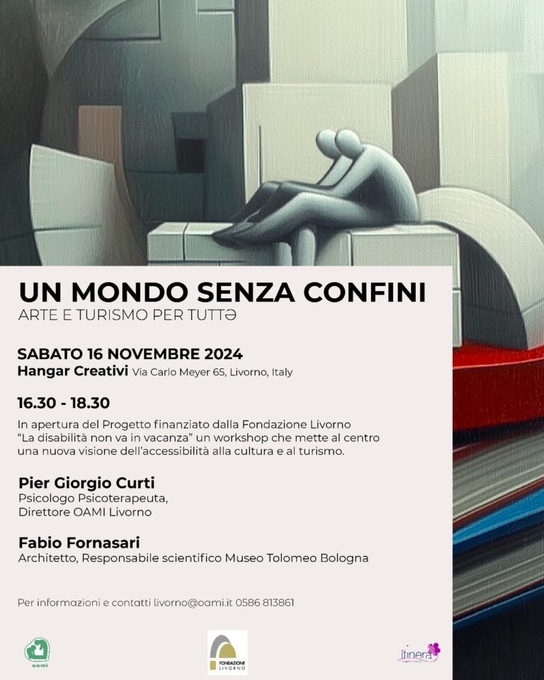 Per questa occasione OAMI ha organizzato un’iniziativa dal titolo “Un mondo senza confini: arte e turismo per tuttə” con due interventi significativi nel panorama del welfare culturale di Fabio Fornasari – architetto e responsabile del Museo Tolomeo di Bologna che nasce nel 2015 presso l’Istituto dei Ciechi Francesco Cavazza e che opera in favore delle persone con disabilità visiva, con l’obiettivo di creare opportunità di autonomia in ambito educativo, culturale, formativo, professionale e di Pier Giorgio Curti, psicologo psicoterapeuta, Direttore OAMI Livorno.