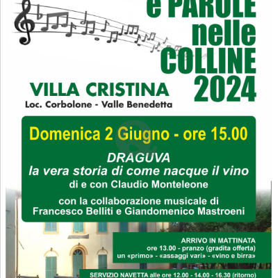 Protagonista sarà Claudio Monteleone con uno spettacolo in cui ci farà vivere la storia del vino, ma non mancherà la musica grazie alla partecipazione di Francesco Bellitti e Giandomenico Mastroeni che ci terranno compagnia nel corso della giornata