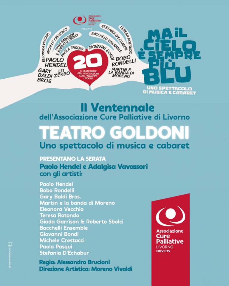 In occasione del ventennale, l’associazione Cure Palliative ha organizzato al Teatro Goldoni lo spettacolo di musica e cabaret Ma il cielo è sempre più blu. Presentano la serata, in programma il 27 ottobre alle 20.45, Paolo Hendel e Adalgisa Vavassori. Sul palco una schiera di talentuosi artisti che renderanno la serata indimenticabile: Bobo Rondelli; Gary Baldi Bros; Martin e la banda di Moreno; Eleonora Vecchio; Teresa Rotondo; Giada Garrison & Roberto Sbolci; Bacchelli Ensemble; Giovanni Bondi; Michele Crestacci; Paola Pasqui; Stefania D’Echabur. Regia di Alessandro Brucioni, direzione artistica Moreno Vivaldi. Tutti gli artisti interverranno a titolo gratuito. L’incasso sarà interamente devoluto all’Associazione. Di seguito il link per l’acquisto dei biglietti: https://www.ticketone.it/event/ma-il-cielo-e-sempre-piu-blu-teatro-goldoni-17703030/