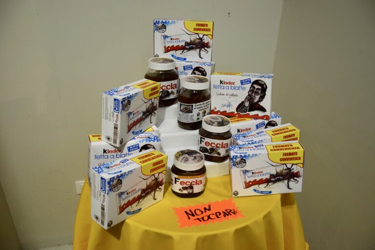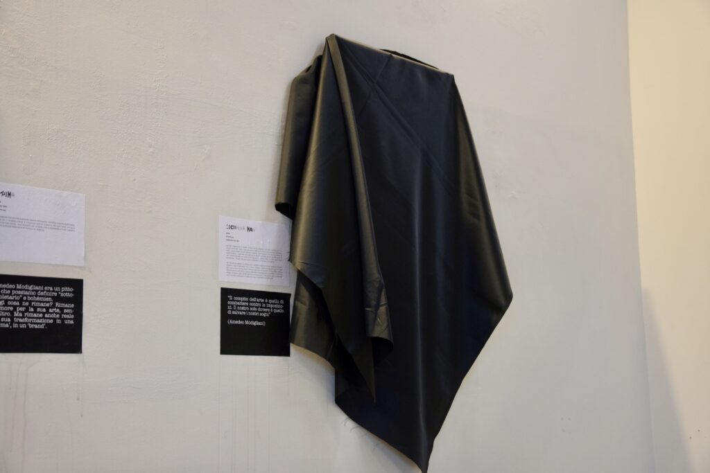 L’esposizione non si discosta del tutto dal grande artista labronico, ma ne offre una visione differente attraverso le opere sovversive di Illustre Feccia, curate da Alessia Tommasini. “Uno scherzo – continua Barbara entrando nel dettaglio – che porta ad una riflessione che già Froglia aveva insinuato in noi quando creò quella testa che tutti credettero vera. Un’operazione di marketing per la quale abbiamo sfruttato il genio di Modì per portarvi a vedere un’esposizione che lo distorce, e lo fa sovvertendolo con la volontà di parodiare e travolgere loghi, brand e messaggi pubblicitari. Una sovversione che tuttavia risulta amorosa, che lo cita e lo omaggia allo scopo di mostrare il consumismo”.