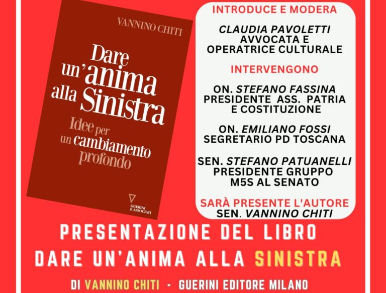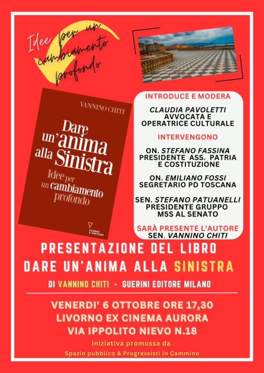 Appuntamento all’Ex Aurora il 6 ottobre, alle 17,30, organizzato da Spazio pubblico e Progressisti in cammino. Il libro di Vannino Chiti con la presenza dell’autore e di protagonisti della vita politica regionale e nazionale offre l’opportunità di un confronto sulle scadenze programmatiche e politiche con particolare riferimento ai temi del lavoro, delle ineguaglianze economiche e sociali, del progresso solidale, dell’ambiente e della pace. L’iniziativa è già parte di un fecondo rapporto con realtà sociali. economiche e delle culture del riformismo socialista, liberale e cattolico che avrà nuovi appuntamenti per chi si riconosce nella partecipazione alla costruzione di un progetto progressista e di sinistra.