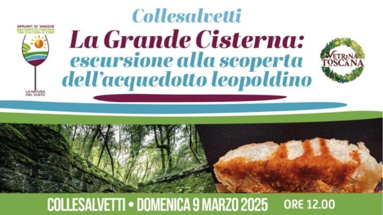 Domenica 9 marzo tour nella magia delle sorgenti del settecentesco Acquedotto Leopoldino che da Colognole (frazione di Collesalvetti) si snodava fino a portare l’acqua a Livorno. Il tour, immerso in un ambiente naturalistico di suggestiva bellezza ci porterà alla conoscenza di come funzionava, ed in parte funziona ancora, il sistema di raccolta delle acque potabili che dalle colline dell’entroterra arrivava fin nel cuore della città. Un evento che punta a valorizzare questo prezioso cuore verde e blu del comune di Collesalvetti e che a sorpresa inizierà prima con una degustazione di uno dei piatti di carne più tipici di Livorno, “la francesina”, ma in versione street food ovvero dentro il classico pane “a rosetta” accompagnata da vino o acqua, per consentirvi una passeggiata con più energia. L’evento è promosso da Confesercenti Provinciale di Livorno nel programma Vetrina Toscana con il contributo di Regione Toscana e Camera di Commercio della Maremma e del Tirreno e con il Patrocinio del Comune di Collesalvetti.