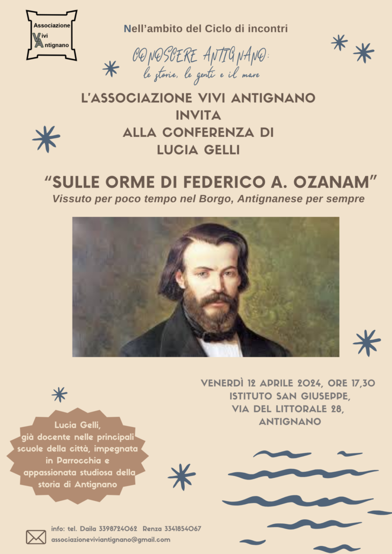 Una strada a lui intitolata, che corre vicino alla villetta dove ha abitato e due targhe marmoree lì apposte in occasione del centenario della morte avvenuta proprio ad Antignano, ricordano la permanenza di Federico Antonio Ozanam nel paese ; qui ha infatti trascorso gli ultimi mesi della sua vita, ormai segnata da una grave malattia, sperando che l’aria di mare potesse giovargli.