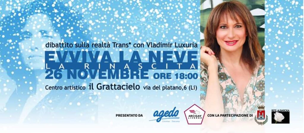 Il talk show con Vladimir Luxuria ricorderà anche la scrittrice giornalista attivista LGBTQIA+ Delia Vaccarello e il suo libro “Evviva la neve” che narra le migrazioni di genere, la lotta misteriosa e appariscente delle persone transgender.