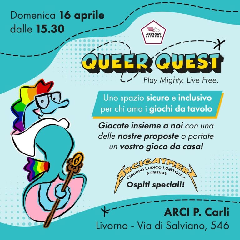 Domenica 16 aprile riparte il progetto Queer Quest: Play Might, Live Free! presso Circolo ARCI P. Carli in via di Salviano, 546 dalle ore 15:30.